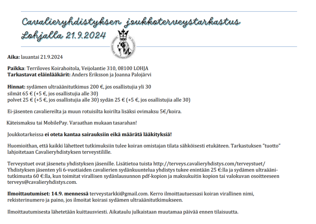 21.9. 2024 Joukkoterveystarkastus Lohjalla