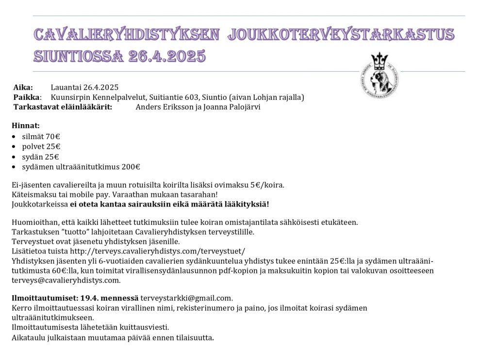 Joukkoterveystarkastustilaisuus 26.4.2025 Siuntiossa