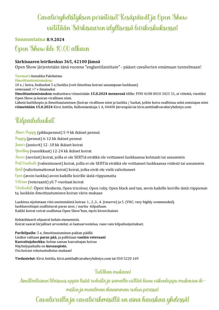 Cavalier Show 14.9. 2024 Jyväskylä