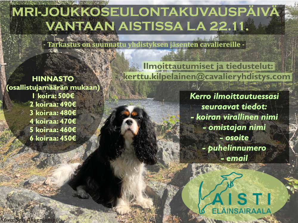 MRI-joukkoseulontakuvauspäivä Aistissa 22.11.2025 Päiväys ja aika 22.11.2025Koko päivä Aistiin saatiin järjestettyä vielä toinen kuvauspäivä tälle syksylle, tervetuloa mukaan lauantaina 22.11.